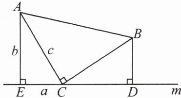 3. 等腰直角三角板按如图所示的方式放置,直角顶点$C在直线m$上,分别过点$A$,$B作AE\perp m于点E$,$BD\perp m于点D$.