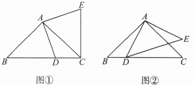 12. 问题:如图①,在 Rt△ABC 中,AB = AC,D 为 BC 边上一点(不与点 B,C 重合),将线段 AD 绕点 A 按逆时针方向旋转 90°得到 AE,连接 EC,则线段 BC,DC,EC 之间满足的等量关系式为