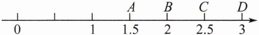 2. 如图,表示$\sqrt{7}$的点在数轴上表示时,它在哪两个字母之间(