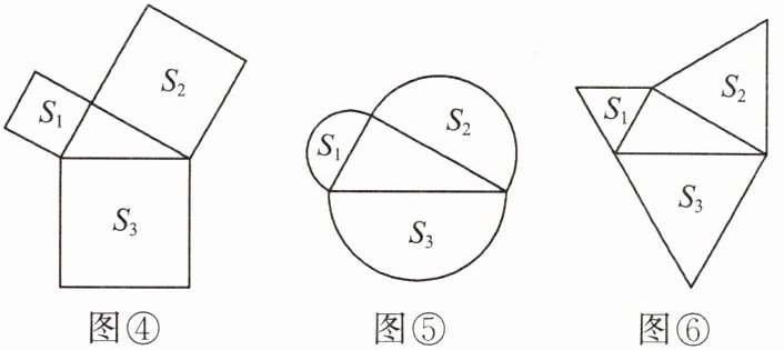 (2)如图④⑤⑥,以直角三角形的三边为边或直径,分别向外部作正方形、半圆、等边三角形,这三个图形中面积关系满足 $ S_1 + S_2 = S_3 $的有______个。