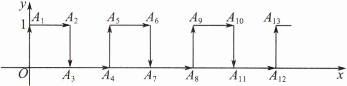 在平面直角坐标系中,一只蚂蚁从原点$O$出发,按向上、向右、向下、向右的方向依次不断移动,每次移动$1$个单位长度。其行走路线如图所示。