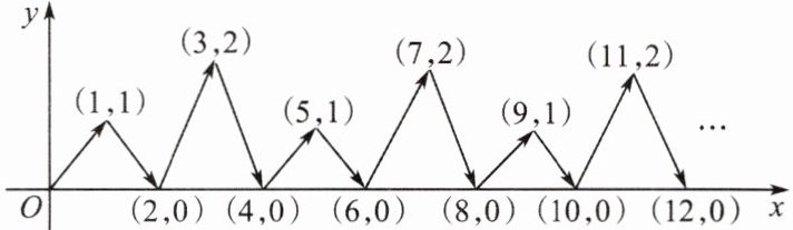 5. 如图,动点$P$在平面直角坐标系中按图中箭头所示方向运动,第$1次从原点运动到点(1,1)$,第$2次接着运动到点(2,0)$,第$3次接着运动到点(3,2)$,第$4次接着运动到点(4,0)$,…$$,按这样的运动规律经过第$2023$次运动后,动点$P$的坐标是(