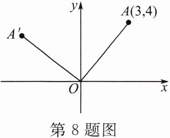 8. 如图,在平面直角坐标系 $ xOy $ 中,已知点 $ A(3,4) $,将 $ OA $ 绕坐标原点 $ O $ 逆时针旋转 $ 90^{\circ} $ 至 $ OA' $,则点 $ A' $ 的坐标是