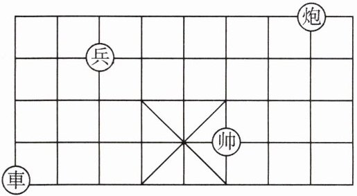 7. 观察下图所示的象棋棋盘,若“兵”所在的位置用 $ (1,3) $ 表示,“炮”所在的位置用 $ (6,4) $ 表示,那么“帅”所在的位置可表示为