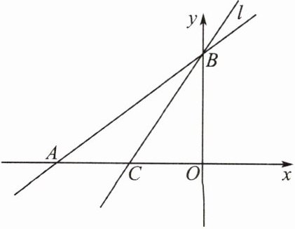 6. 如图,一次函数 $ y = \frac{3}{4}x + 6 $ 的图象与 $ x $ 轴,$ y $ 轴分别交于点 $ A $,$ B $. 过点 $ B $ 的直线 $ l $ 交 $ x $ 轴于点 $ C $,$ BC $ 平分 $ \triangle ABO $ 的面积,则与直线 $ l $ 关于 $ y $ 轴对称的直线表达式为