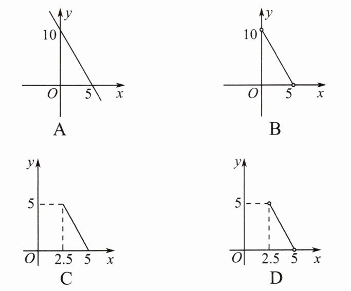 1.已知等腰三角形的周长是10,底边长y是腰长x的函数,则下列图象中,能正确反映y与x之间函数关系的是 (
