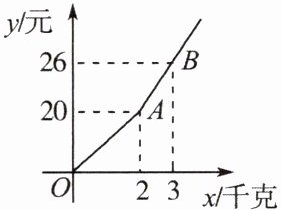 1.如图所示,购买一种苹果,所付款金额y(元)与购买量x(千克)之间的函数图象由线段OA和射线AB组成,则一次购买3千克这种苹果比分三次每次购买1千克这种苹果可节省 (