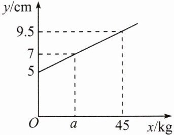 2.一个条形测力计不挂重物时长5cm,挂上重物后,在弹性限度内弹簧伸长的长度与所挂重物的质量成正比.弹簧总长y(cm)关于所挂物体质量x(kg)的函数图象如图所示,则图中a的值是 (