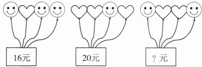 5.小岩打算购买气球装扮学校“毕业典礼”活动会场,气球的种类有笑脸和爱心两种,两种气球的价格不同,但同一种气球的价格相同.由于会场布置需要,购买时以一束(4个气球)为单位.已知第一、二束气球的价格如图所示,则第三束气球的价格为 (