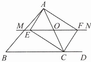 如图,在$\triangle ABC$中,点$O是边AC$上一动点,过点$O作直线MN// BC$,$MN分别交\angle ACB$,$\angle ACD的平分线于点E$,$F$.