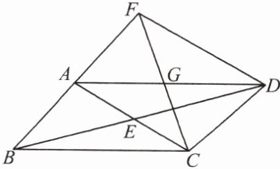4. 如图,在平行四边形 $ABCD$ 中,对角线 $AC$ 与 $BD$ 相交于点 $E$,点 $G$ 为 $AD$ 的中点,连接 $CG$,$CG$ 的延长线交 $BA$ 的延长线于点 $F$,连接 $FD$。