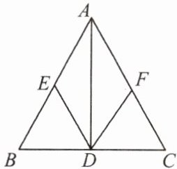 3. 如图,$\triangle ABC$ 是以 $BC$ 为底的等腰三角形,$AD$ 是边 $BC$ 上的高,点 $E$,$F$ 分别是 $AB$,$AC$ 的中点。