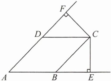 1. 如图,四边形 $ABCD$ 是菱形,$CE \perp AB$ 交 $AB$ 的延长线于点 $E$,$CF \perp AD$ 交 $AD$ 的延长线于点 $F$。求证:$DF = BE$。