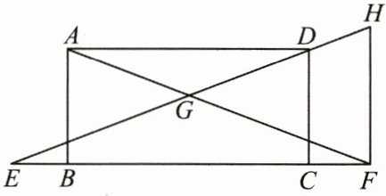 21. (10 分)(2023·浙江温州中考)如图,已知矩形$ABCD$,点$E在CB$延长线上,点$F在BC$延长线上,过点$F作FH \perp EF交ED的延长线于点H$,连接$AF交EH于点G$,$GE = GH$。