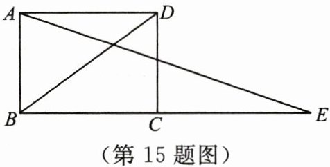 15. 如图,延长矩形 ABCD 的边 BC 至点 E,使 CE = BD,连接 AE. 若∠ADB = 40°,则∠E 的度数为
