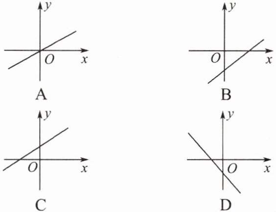 5. 若关于$x$的一元二次方程 $x^{2}-2x + kb + 1 = 0$有两个不相等的实数根,则一次函数 $y = kx + b$的大致图象可能是 (