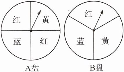 7. 如图,小明和小亮用转盘做“配紫色”游戏(红色和蓝色在一起能配成紫色).小明转动的 A 盘被等分成 4 个扇形,小亮转动的 B 盘被等分成 3 个扇形,两人分别转动转盘一次.