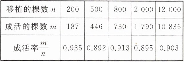 由此估计这种苹果树苗移植成活的概率约为