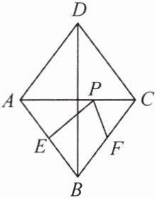 1. 如图, 在菱形 $ ABCD $ 中, 对角线 $ AC = 6 $, $ BD = 8 $, 点 $ E $, $ F $ 分别是 $ AB $, $ BC $ 的中点. 点 $ P $ 在 $ AC $ 上运动, 在运动过程中, $ PE + PF $ 存在最小值, 则这个最小值是 (