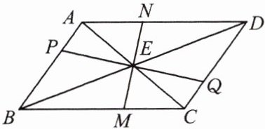 10. 如图, 过 $ □ ABCD $ 对角线 $ AC $ 与 $ BD $ 的交点 $ E $ 作两条互相垂直的直线, 分别交边 $ AB $, $ BC $, $ CD $, $ DA $ 于点 $ P $, $ M $, $ Q $, $ N $.