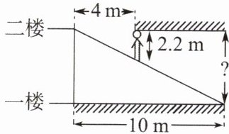 2. 如图,某超市在一楼至二楼之间安装有电梯,天花板与地面平行。张强扛着箱子(人与箱子的总高度约为 $ 2.2\ m $)乘电梯刚好安全通过,请你根据图中数据回答,两层楼之间的高约为 (
