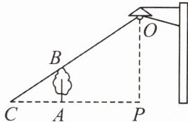 2. (2022·浙江绍兴中考)如图,树 $ AB $ 在路灯 $ O $ 的照射下的影长为 $ AC $,已知路灯高 $ PO = 5\ m $,树影 $ AC = 3\ m $,树 $ AB $ 与路灯 $ O $ 的水平距离 $ AP = 4.5\ m $,则树的高度 $ AB $ 为 (