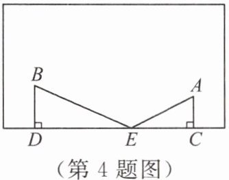 4. 如图,球从 $ A $ 处射出,经球台边挡板 $ CD $ 反射到点 $ B $,已知 $ AC = 10\ cm $, $ BD = 15\ cm $, $ CD = 50\ cm $,则点 $ E $ 到点 $ C $ 的距离是