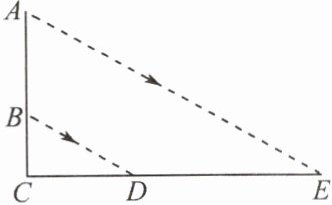 7. 如图, $ AB $ 表示一个窗户的高, $ AE $ 和 $ BD $ 表示射入室内的光线,窗户的下端到地面的距离 $ BC = 1.2\ m $。已知某一时刻 $ BC $ 在地面的影长 $ CD = 1.8\ m $, $ AC $ 在地面的影长 $ CE = 4.8\ m $,则窗户的高度 $ AB = $