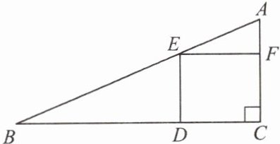 1. 如图,在一块斜边长 $ 30\ cm $ 的直角三角形木板( $ Rt \triangle ACB $)上截取一个正方形 $ CDEF $,点 $ D $ 在边 $ BC $ 上,点 $ E $ 在斜边 $ AB $ 上,点 $ F $ 在边 $ AC $ 上。若 $ AF:AC = 1:3 $,则这块木板截取正方形 $ CDEF $ 后,剩余部分的面积为 (