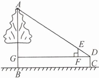 6. 如图,测得边 $ DF $ 离地面的高度为 $ 1.4\ m $,点 $ D $ 到 $ AB $ 的距离等于 $ 6\ m $。已知 $ DF = 30\ cm $, $ EF = 20\ cm $,那么树 $ AB $ 的高度等于