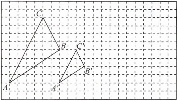 6. 如图,$ \triangle ABC $ 与 $ \triangle A'B'C' $ 是以点 $ O $ 为位似中心的位似图形,它们的顶点都在正方形网格的格点上.