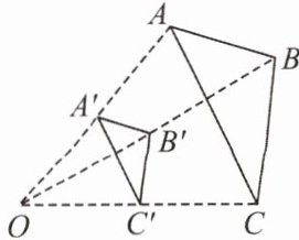 .(1) 连接 $ AA' $、$ BB' $、$ CC' $,三条线段的交点即为位似中心 $ O $(图略)。