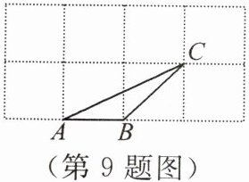 9. 如图,在$2×4$的小正方形网格中,有格点$\triangle ABC$(顶点在小正方形的顶点上的三角形叫作格点三角形),则与$\triangle ABC$相似但不全等的格点三角形共有