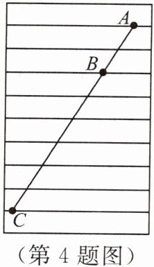 4. 如图,练习本中的横格线都平行,且相邻两条横格线间的距离都相等,同一条直线上的三个点$A,B,C$都在横格线上。若线段$AB= 4cm$,则线段$BC= $