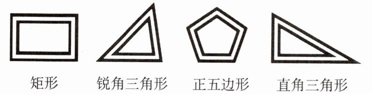 7. 如图,在矩形、锐角三角形、正五边形、直角三角形的外边加一个宽度一样的外框,保证外框的边与原图形的对应边平行,则外框与原图一定相似的有(