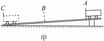 4. 小明同学用下图甲所示的实验装置研究小车在斜面上的运动。他将小车从坡顶 $ A $ 点由静止释放,测出小车从 $ A $ 点运动到坡底 $ C $ 点的时间 $ t_1= 2.6\ s $;再次将小车从 $ A $ 点由静止释放,测出小车从 $ A $ 点运动到中点 $ B $ 点的时间 $ t_2= 1.8\ s $。
