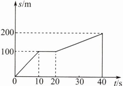 30 5 解析:在s-t图像中,物体在0至10s内的图像是一条斜线,表示物体做的是匀速直线运动;由图像读出前10s内物体通过的路程为100m,其速度v=s/t=100m/10s=10m/s;由v=s/t可得,前3s内通过的路程s'=vt'=10m/s×3s=30m;由图像可知物体在40s内通过的路程s''=200m,40s内该物体的平均速度v''=s''/t''=200m/40s=5m/s。