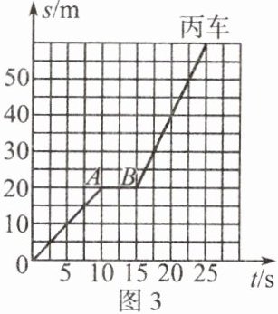 (1) 由图 $ 3 $ 中丙车图像可知, 丙车在 $ AB $ 段处于______ (选填“运动”或“静止”)状态。