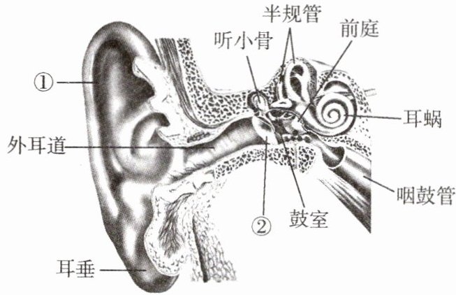 10.下图是人耳的结构图。人们感知声音的基本过程:外界传来的声音被①