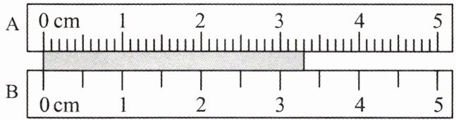 15. 如下图,用 A、B 两把刻度尺测同一物体的长度,用 B 刻度尺测出物体的长度为
