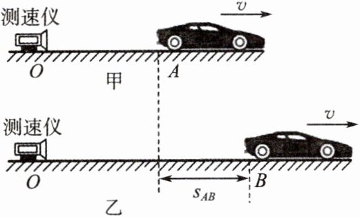 (2)测速仪与汽车的距离$s_{OB}$等于超声波通过路程的一半,则$s_{OB}=\frac {1}{2}×204\ m=102\ m$汽车通过的路程$s_{AB}=s_{OB}-s_{OA}=102\ m-96\ m=6\ m$
