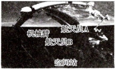 18. (2024·湖北中考)2024 年 5 月 28 日,神舟十八号航天员乘组圆满完成出舱任务。如下图所示,搭乘机械臂的航天员 A 已为空间站安装好空间碎片防护装置,航天员 B 正在出舱。以空间站为参照物,安装好的防护装置是