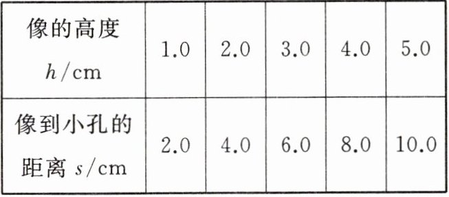 根据表中的数据可以得到的结论:蜡烛和小孔的位置固定后,像的高度 h 与像到小孔的距离 s 成_________(选填“正比”或“反比”)。