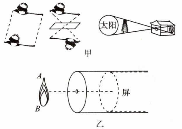(1)请在图乙中作出烛焰 AB 在屏上所成的像 A'B'(要求标出 A'、B')。