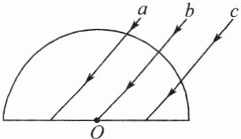 11. 如下图所示,小明画出了三条互相平行的光线射入横截面为半圆形的柱状玻璃砖(质地、厚度均匀,$O$ 为圆心)时光的传播路径,其中正确的是(