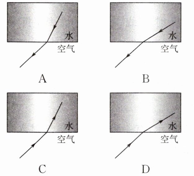 A 解析:游客看到的北极熊的头和身体不在同一竖直面上,是因为北极熊反射的光线从水中斜射进入空气中时发生了折射。光从水中斜射进入空气中,折射角大于入射角,人逆着折射光线看,看到的是北极熊的虚像,故A符合题意,B、C、D不符合题意。