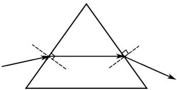 14. 如下图所示,一束光射向三棱镜,请画出这束光两次折射的大致光路。