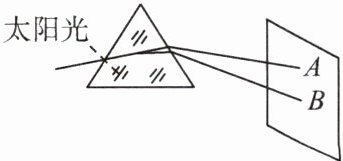 17.英国物理学家牛顿曾经做过光的色散实验。下图所示的实验中将一束太阳光投射到玻璃三棱镜上,在棱镜后侧光屏上的 AB 范围内可以观察到不同颜色的光。