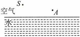 15. 如下图所示,光源 S 发出一条光线射向水面,在水面处发生反射和折射,反射光线经过 A 点。请画出入射光线、反射光线和大致的折射光线。