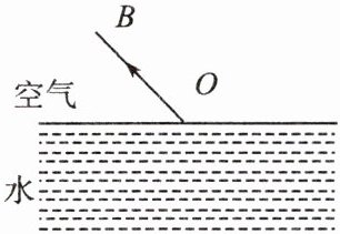 14. 如下图所示,OB 为一束光线在水面的反射光线,O 为入射点。请画出入射光线 AO 和其进入水中的折射光线 OC。